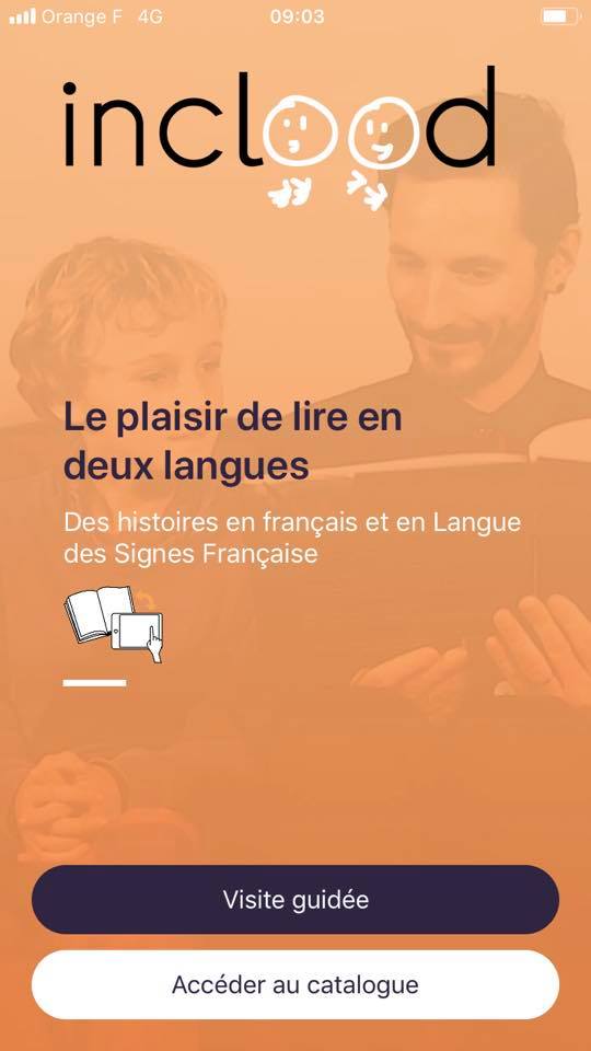 Inclood est une maison d'édition bilingue (en Langue des Signes Française et en Français) qui permet aux personnes en situation de handicap auditif d'adapter des livres écrits en français, vers la Langue des Signes Française en passant par une application également nommée Inclood. Inclood utilise la Réalité Augmentée puisqu'après avoir scanné les images du livre papier, une vidéo se lance automatiquement et traduit le contenu en Langue des Signes Française. A travers cette application, Inclood souhaite donner le plaisir de lire à toutes et à tous et en amont, faire découvrir la Langue des Signes Française à un large public. L'application est disponible sur Android et IOS.